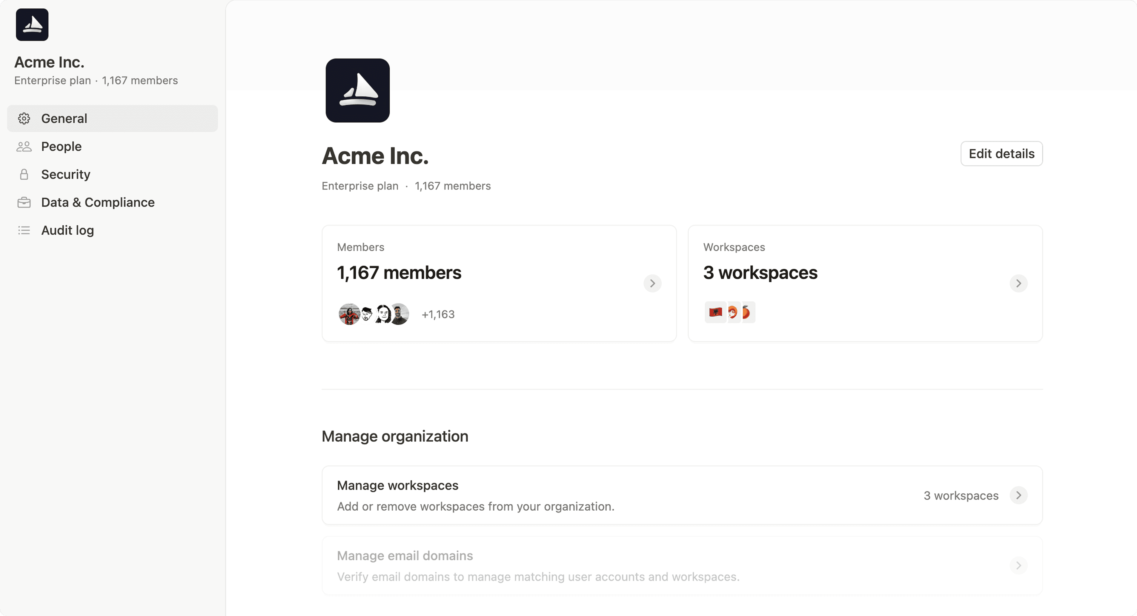 1. You can do this by clicking your workspace name in the sidebar → Manage organization.